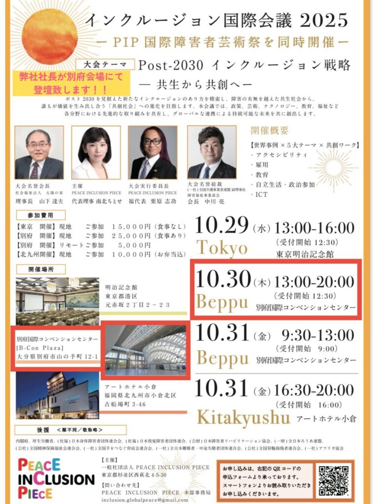 🌍 インクルージョン国際会議2025「Inclusion International Conference 2025(PEACE INCLUSION PIECE)」登壇のお知らせ 🌍