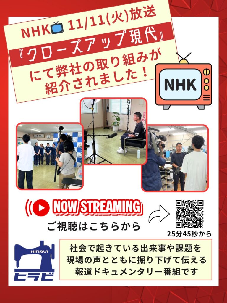 11/11(火)放送 NHKの報道番組『クローズアップ現代』で弊社の取り組みが取り上げられました!