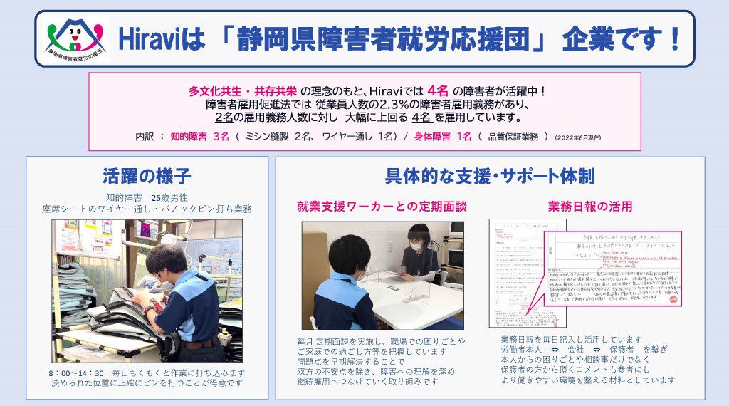 <Hiraviは静岡県障害者就労応援団企業です!>
